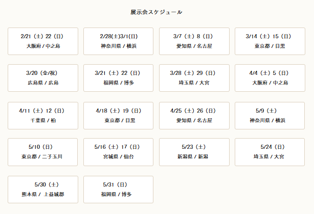 予約をしないと会場に入ること出来ない場合もありますので、必ず予約してから展示会に向かうようにして下さいね。